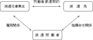 | 労働者派遣事業とは、派遣元事業主が自己の雇用する労働者を、派遣先の指揮命令を受けて、この派遣先のために労働に従事させることを業として行うことをいいます。 |
